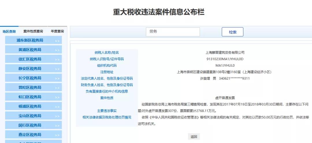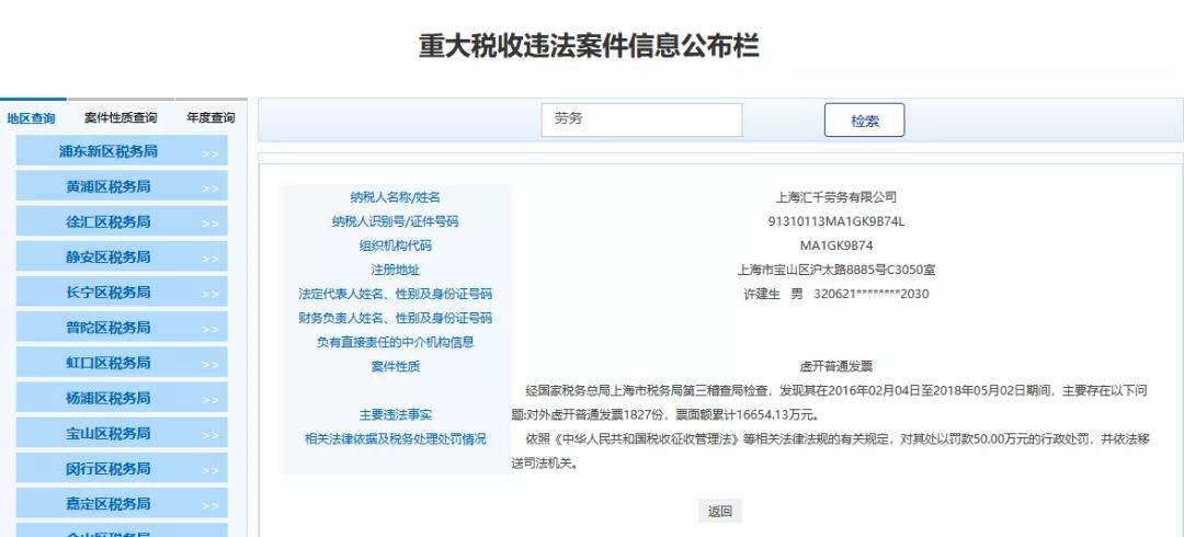 最近魔都上海傳來大消息,多家勞務公司和人力公司被查,清一色的罰款+移送司法機關,不難看出勞務公司一直是稽查重點,也是虛開的重災區,一查一個準!