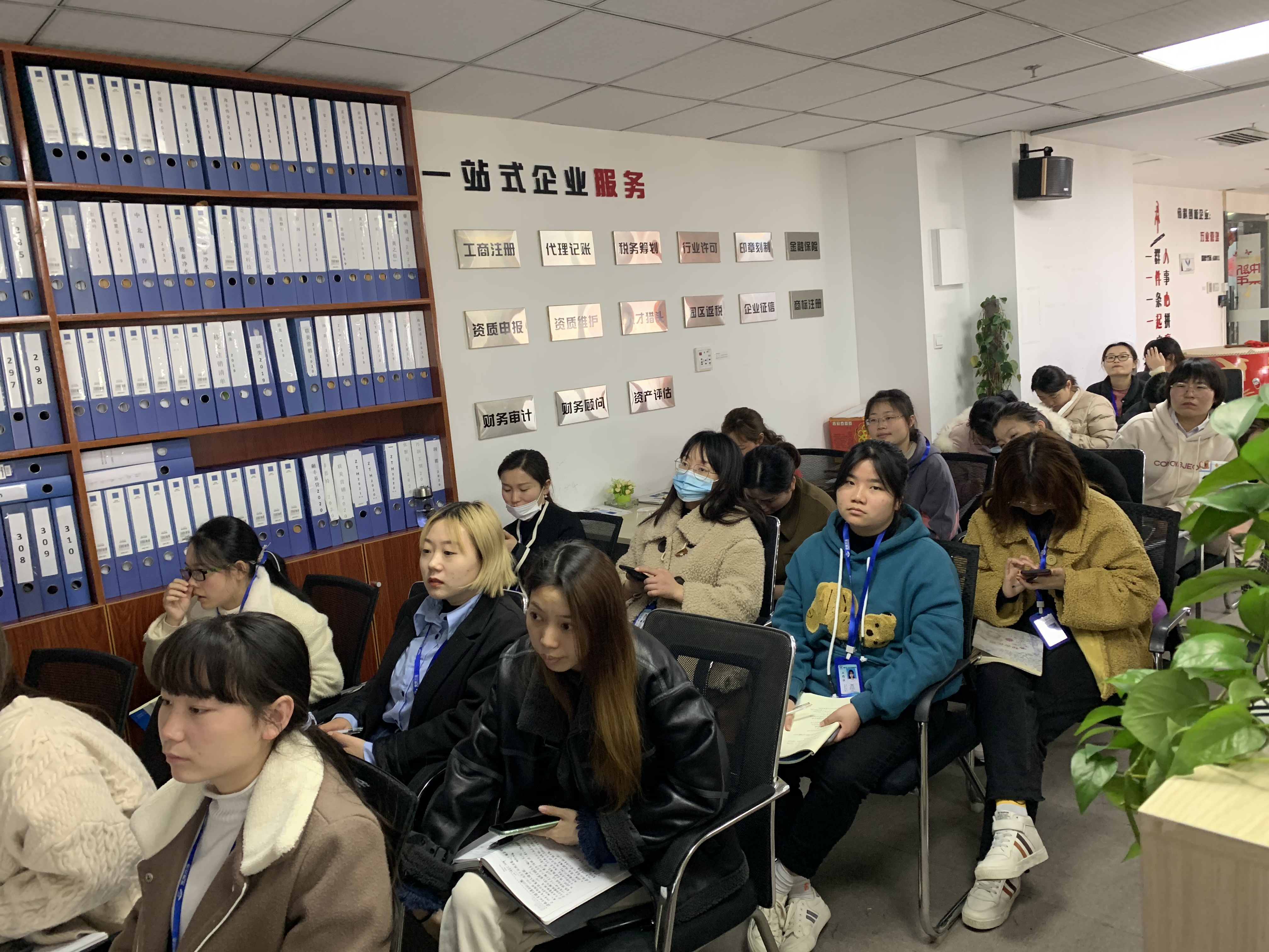 緊接著,下午,安徽萬業中天衡——王所、會計部——許主管為大家講解了“稅籌產品、稅籌服務、財務知識”“購買社保流程”,全員積極參與,用心傾聽。
