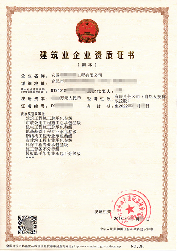 名稱:市政三+機電三+建筑三+鋼結構三+古建筑三+環(huán)保三+施工勞務資質+模板腳手架承包